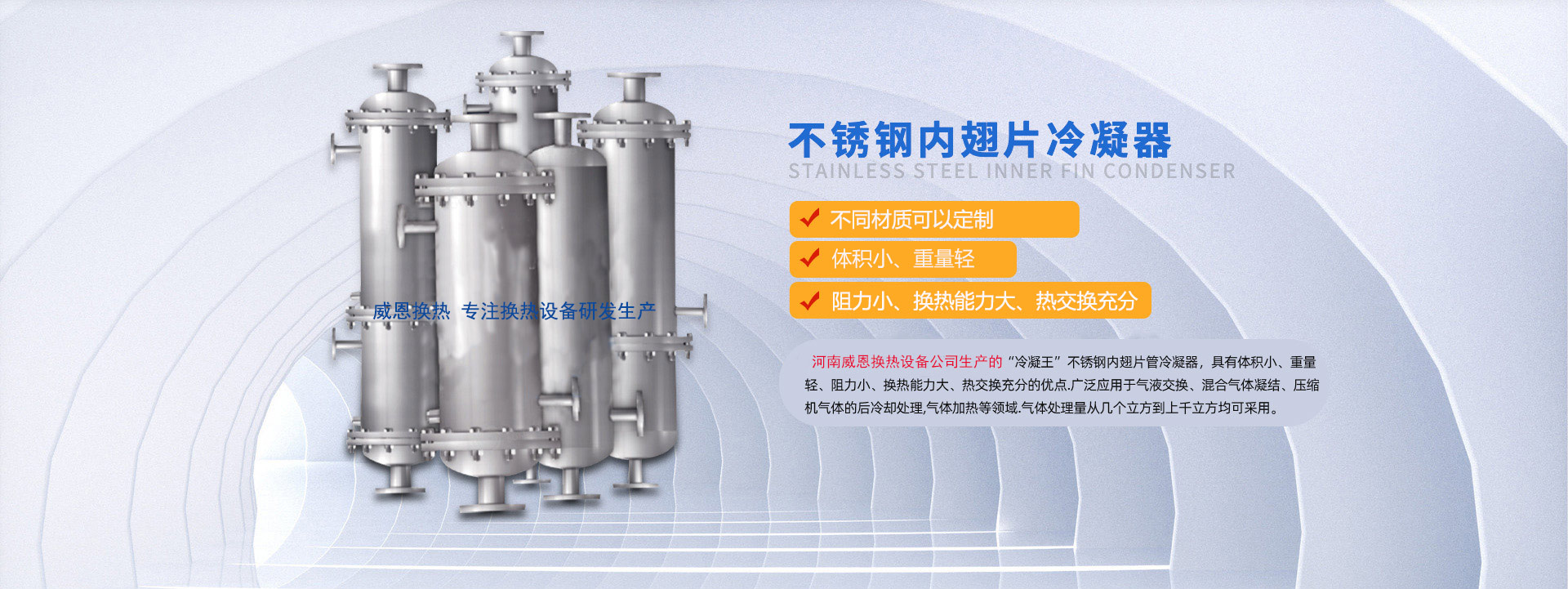 河南威恩換熱設備有限公司是一家專業(yè)生產制造螺旋板式換熱器、列管式換熱器、節(jié)能換熱設備的廠家,集科研、設計、生產、銷售、工程安裝、調試為一體的技術型企業(yè)。公司成立以來一直致力于節(jié)能環(huán)保換熱設備的研發(fā)生產,主要產品包括螺旋板換熱器、列管式換熱器、內翅片冷凝器以及鋼制儲罐、反應釜等的研發(fā)設計與銷售。公司研發(fā)生產的螺旋板式換熱器,傳熱效率高、可靠性高、阻力小、不易堵塞、可有效回收低品位熱能,已經廣泛應用到化學、石油、溶劑、醫(yī)藥、食品、輕工、紡織、冶金、軋鋼、焦化等行業(yè),取得了良好的效果,得到顧客的廣泛認可和一致好評。針對制藥行業(yè),本公司生產的新型不銹鋼內翅片換熱... 【了解更多】